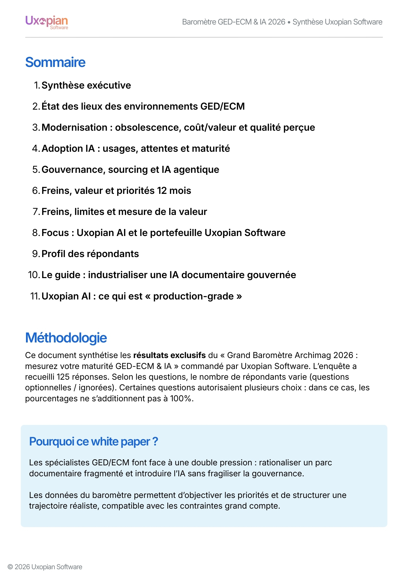 Synthèse, analyses et recommandations issues de l’enquête Archimag commanditée par Uxopian Software auprès de 125 organisations.